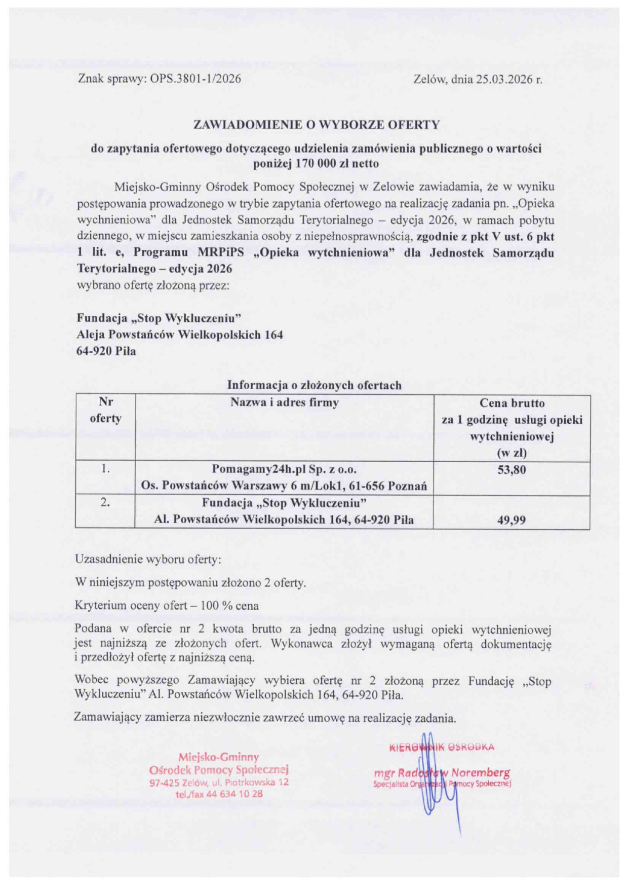 Ochrona Danych Osobowych - Klauzula Informacyjna