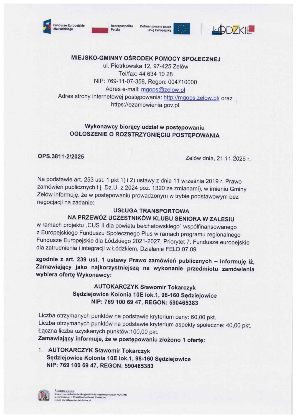 Następny artykuł: Ogłoszenie o rozstrzygnięciu postępowania