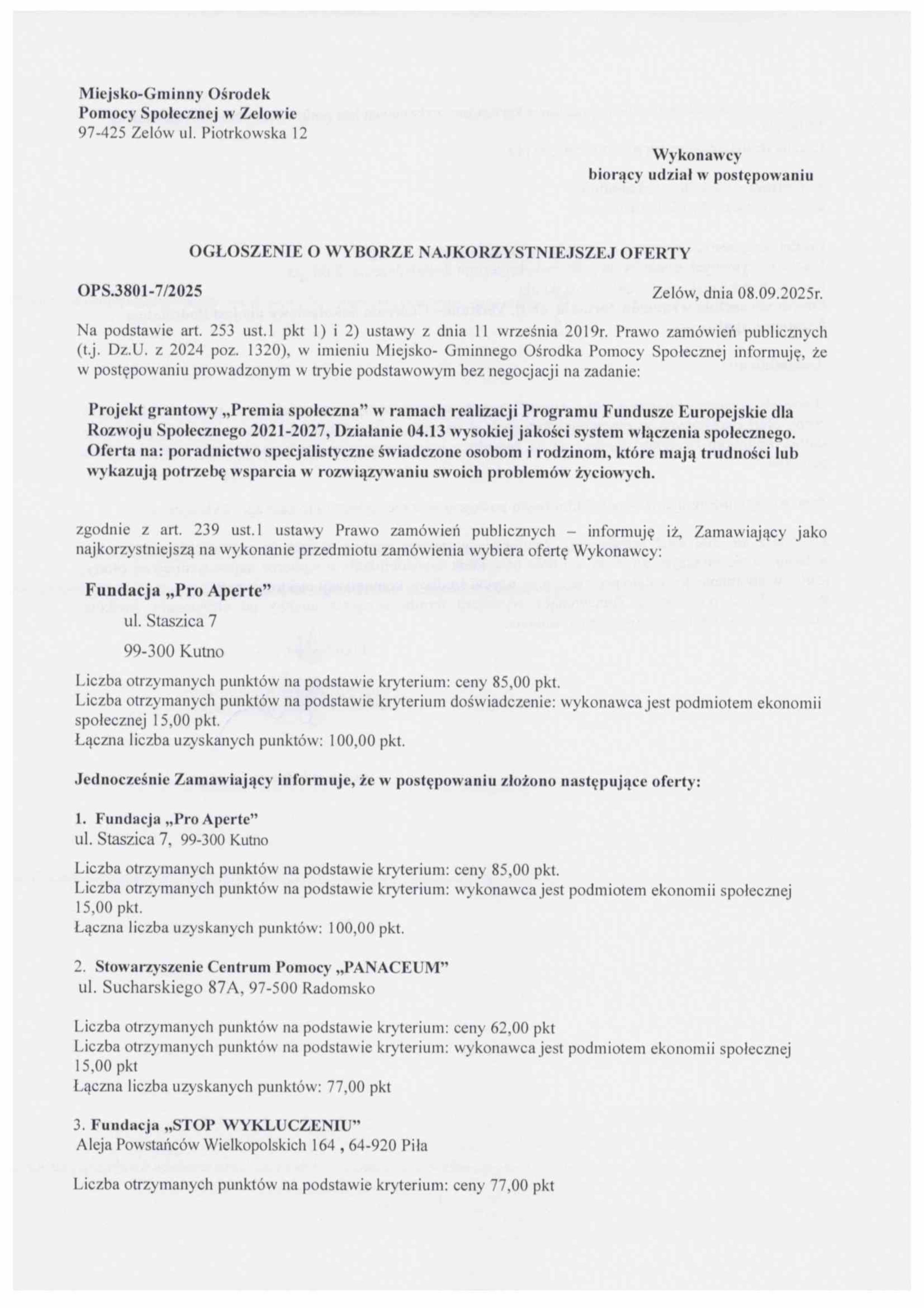 Poprzedni artykuł: Ogłoszenie o wyborze oferty