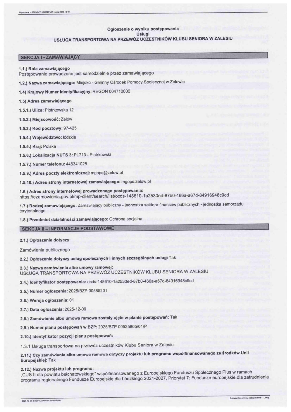 Poprzedni artykuł: Ogłoszenie o wyniku postępowania