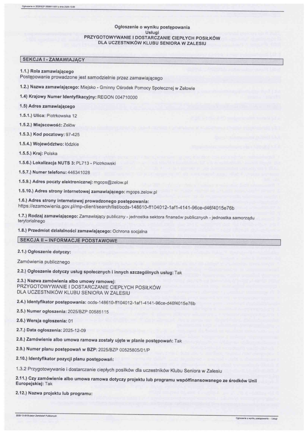 Następny artykuł: Ogłoszenie o wyniku postępowania