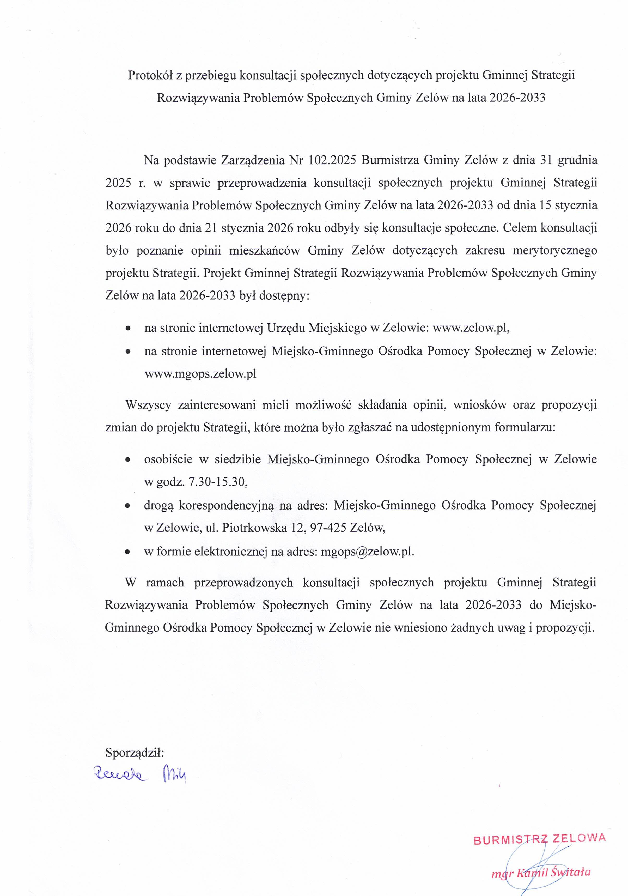 - projekt Gminnej Strategii Rozwiązywania Problemów Społecznych Gminy Zelów na lata 2026-2033".