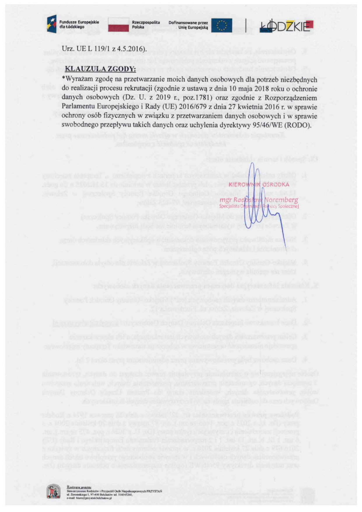 Ochrona Danych Osobowych - Klauzula Informacyjna